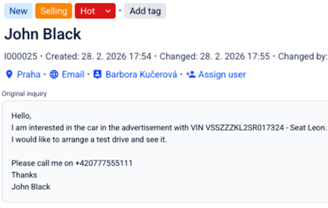 Zrewolucjonizuj sposób obsługi leadów dzięki naszemu nowemu asystentowi opartemu na sztucznej inteligencji. Pożegnaj się z ręcznym wprowadzaniem danych i nigdy więcej nie trać kontaktu z potencjalnym klientem. Narzędzie AI Lead Management automatycznie wyodrębnia kluczowe informacje z e-maili przychodzących i w kilka sekund tworzy w systemie przejrzyste rekordy gotowe do obsługi. Po prostu prześlij zapytania na unikalny adres, a system zajmie się resztou – zapewniając maksymalną widoczność, dokładność danych i błyskawiczny czas reakcji Twojego zespołu sprzedaży.